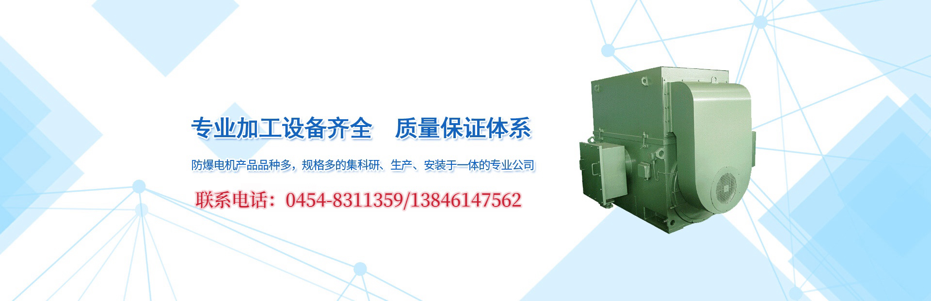 佳木斯防爆電機(jī)有限公司是集科研、制造、銷(xiāo)售及售后服務(wù)一體的防爆電機(jī)、防爆電器制造公司。公司位于佳木斯市東風(fēng)區(qū)建國(guó)街418號(hào),占地面積43000平方米,現(xiàn)有員工386人,其中工程技術(shù)人員62人,擁有各類(lèi)加工、檢驗(yàn)設(shè)備570余臺(tái)套。